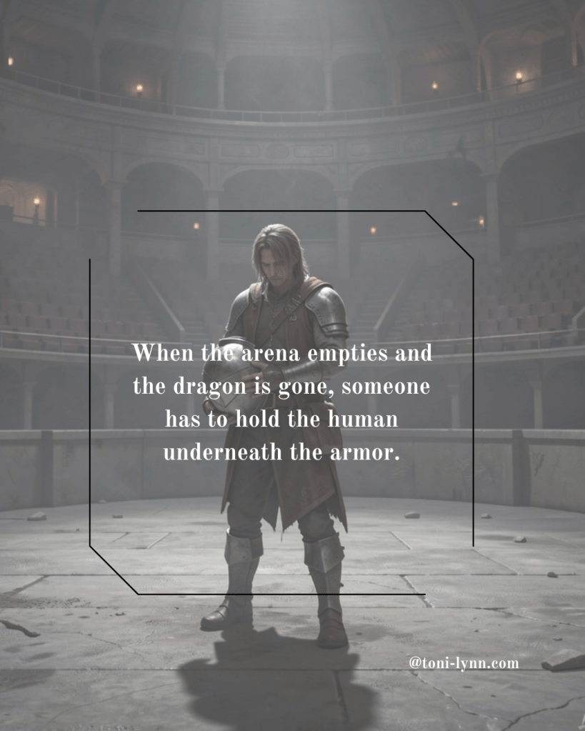 And as spouses, we are often in our own version of the stands. Watching. Waiting. Holding our breath. We cannot fight the dragon for them. We cannot step into the fire. But we feel the heat all the same.